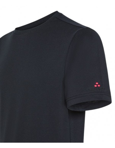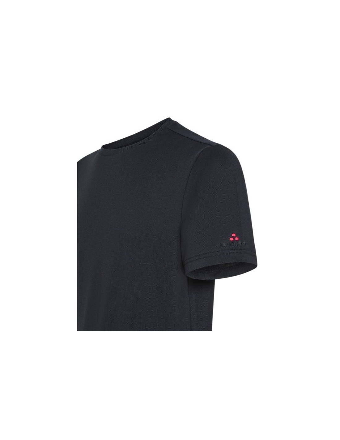 T-shirt in piquet stretch di cotone e seta, tinto in pezza, con logo ricamato sulla manica sinistra. Realizzata in un tessuto morbido, leggero e traspirante, è ideale per affrontare per la bella stagione con stile e comfort. Un modello versatile e moderno, perfetto come base per ogni guardaroba estivo, grazie alle sue infinite possibilità di abbinamento, per uno stile sempre impeccabile.