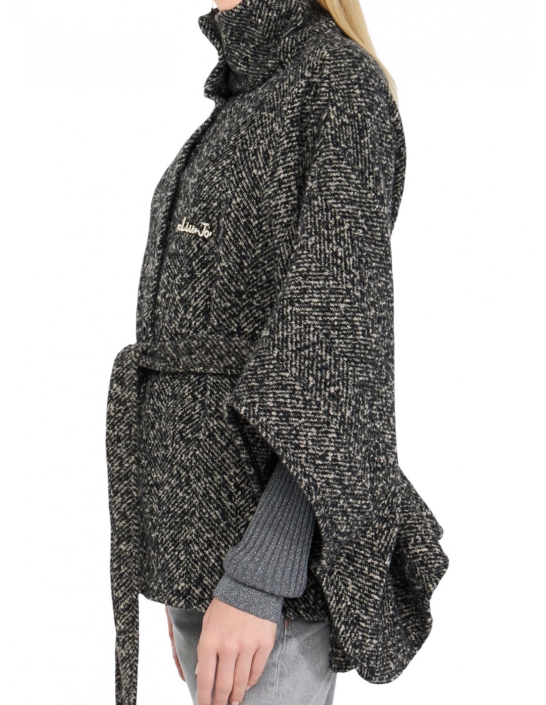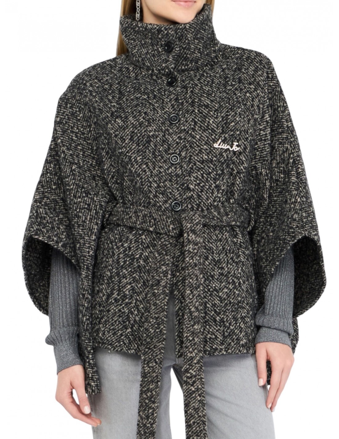 LIU JO - PONCHO SPIGATO BIANCO/NERO