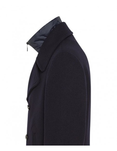 Giacca doppiopetto in misto lana e acrilico a tinta unita, dalla texture morbida e dall’aspetto essenziale ed elegante. Il collo a rever e i bottoni a vista richiamano il gusto sartoriale, reinterpretato con una sensibilità moderna. All’interno, una pettorina rimovibile con imbottitura sintetica e chiusura a zip, offre un extra layer di calore nei giorni più freddi. Lo spacco centrale sul retro garantisce maggiore comfort nei movimenti, senza rinunciare alla pulizia della linea. Parte della linea Peuterey Première, questa giacca unisce l’eleganza formale a un’attitudine moderna e disinvolta, con una cura attenta ai materiali e ai dettagli.