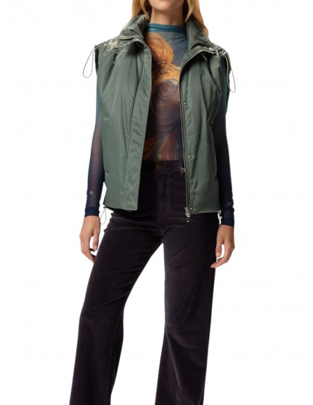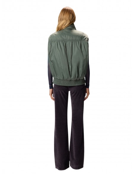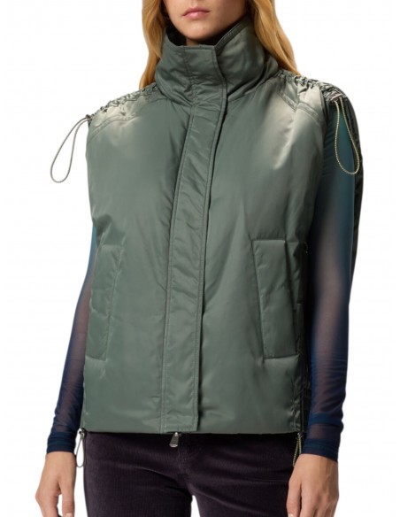 Piumino corto smanicato a collo alto, realizzato in un funzionale tessuto tecnico matte effetto opaco. Chiaro rimando allo stile sportivo e utility, questo modello presenta tasche laterali e coulisse sul giromanica e sull'orlo per regolarne la vestibilità. Un capo funzionale che non rinuncia allo stile inconfondibile di PINKO: completa il tutto con una maglia a maniche lunghe e un paio di jeans per un outfit pratico ed essenziale.