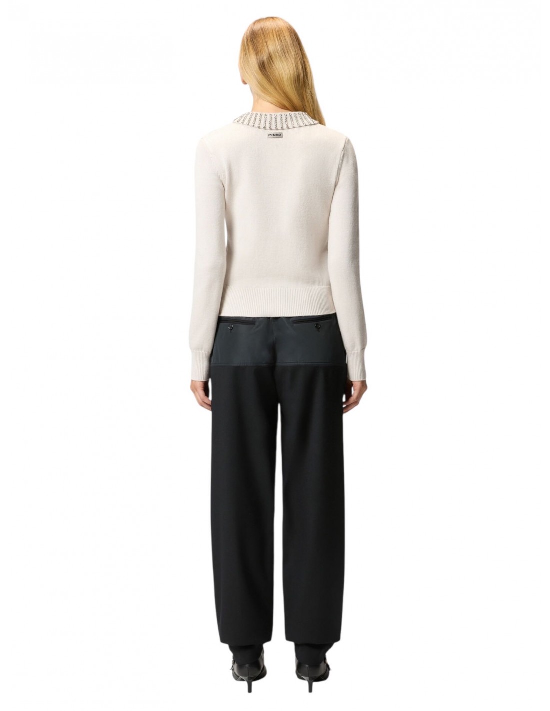 PINKO - MAGLIONE COLLETTO STRASS PANNA