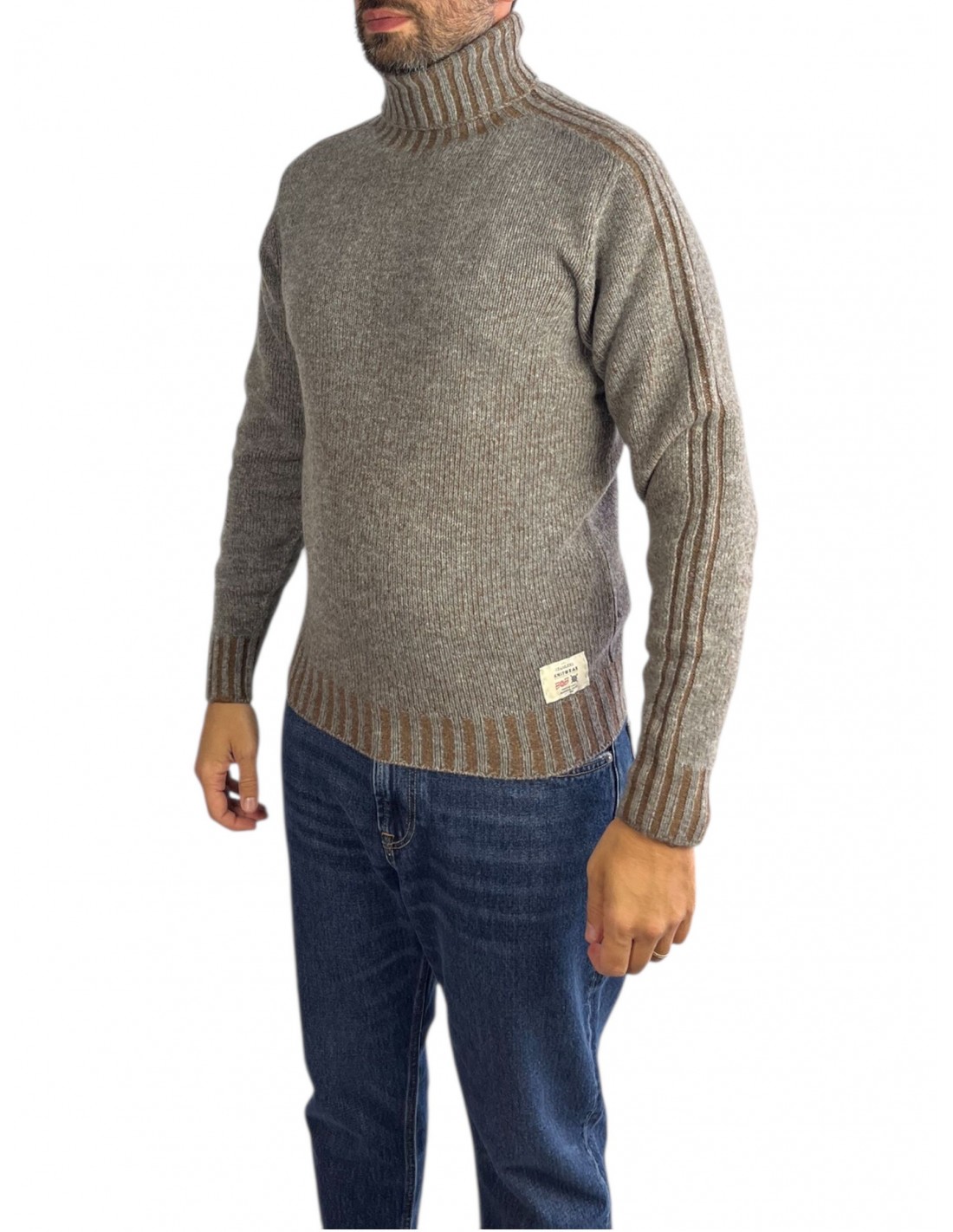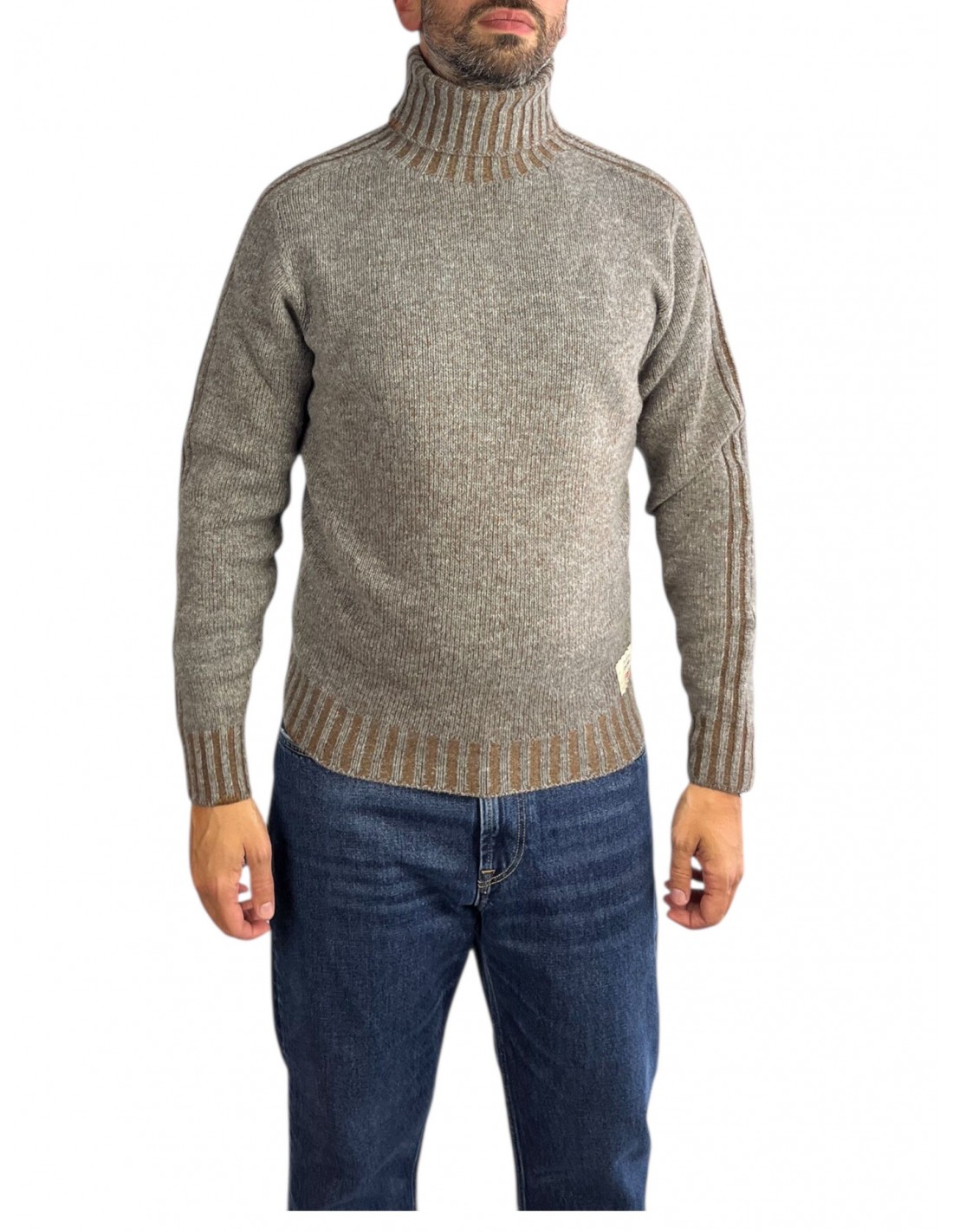 Maglione a collo alto in lana ad effetto vanisé a contrasto colore.
