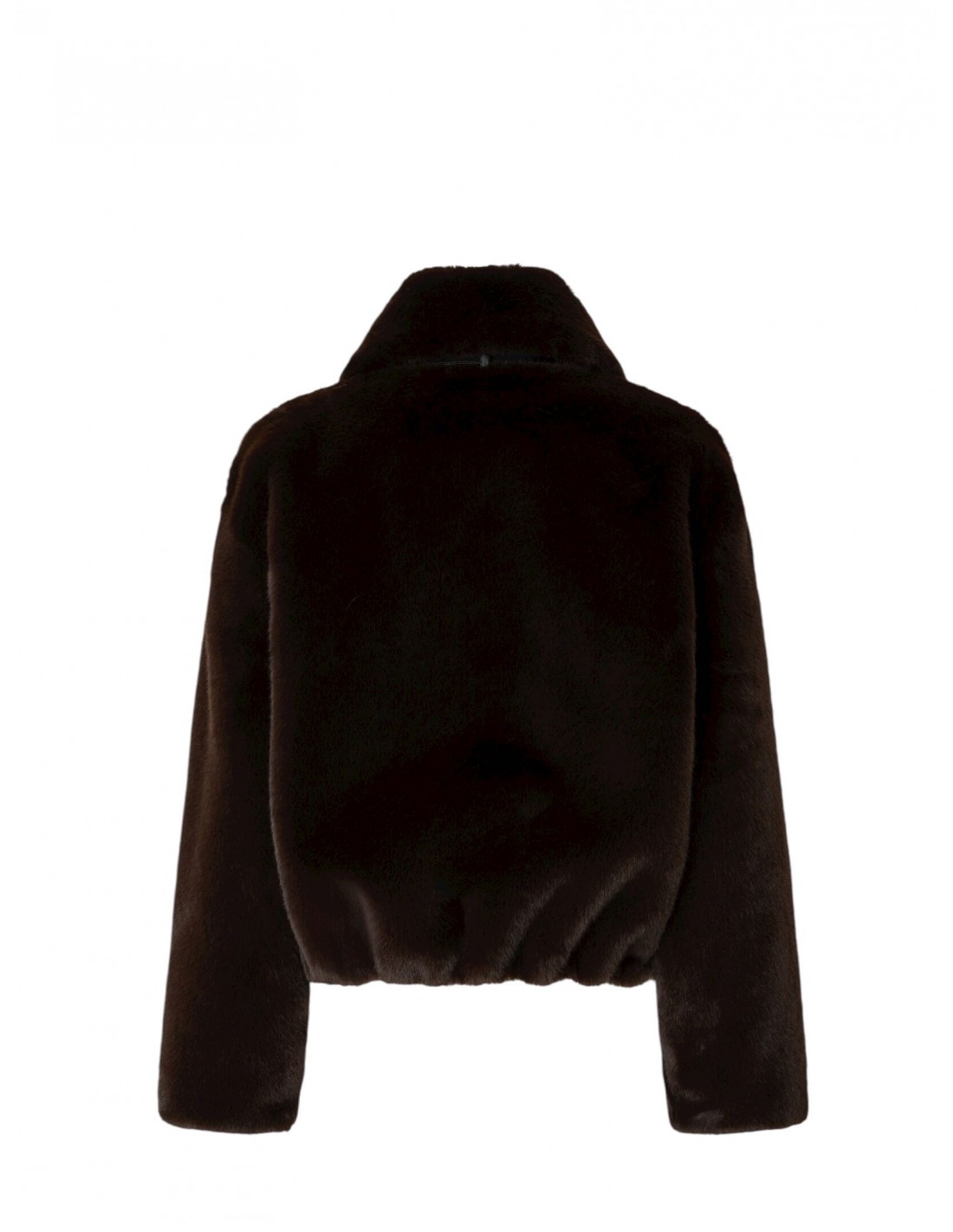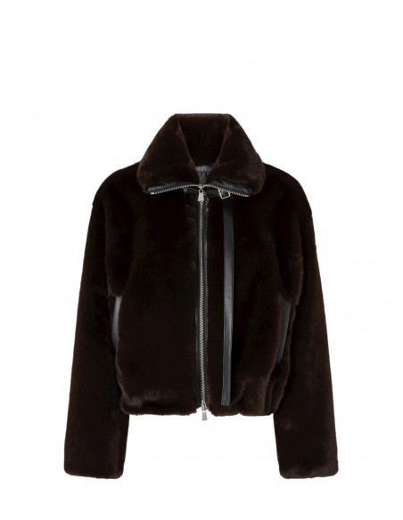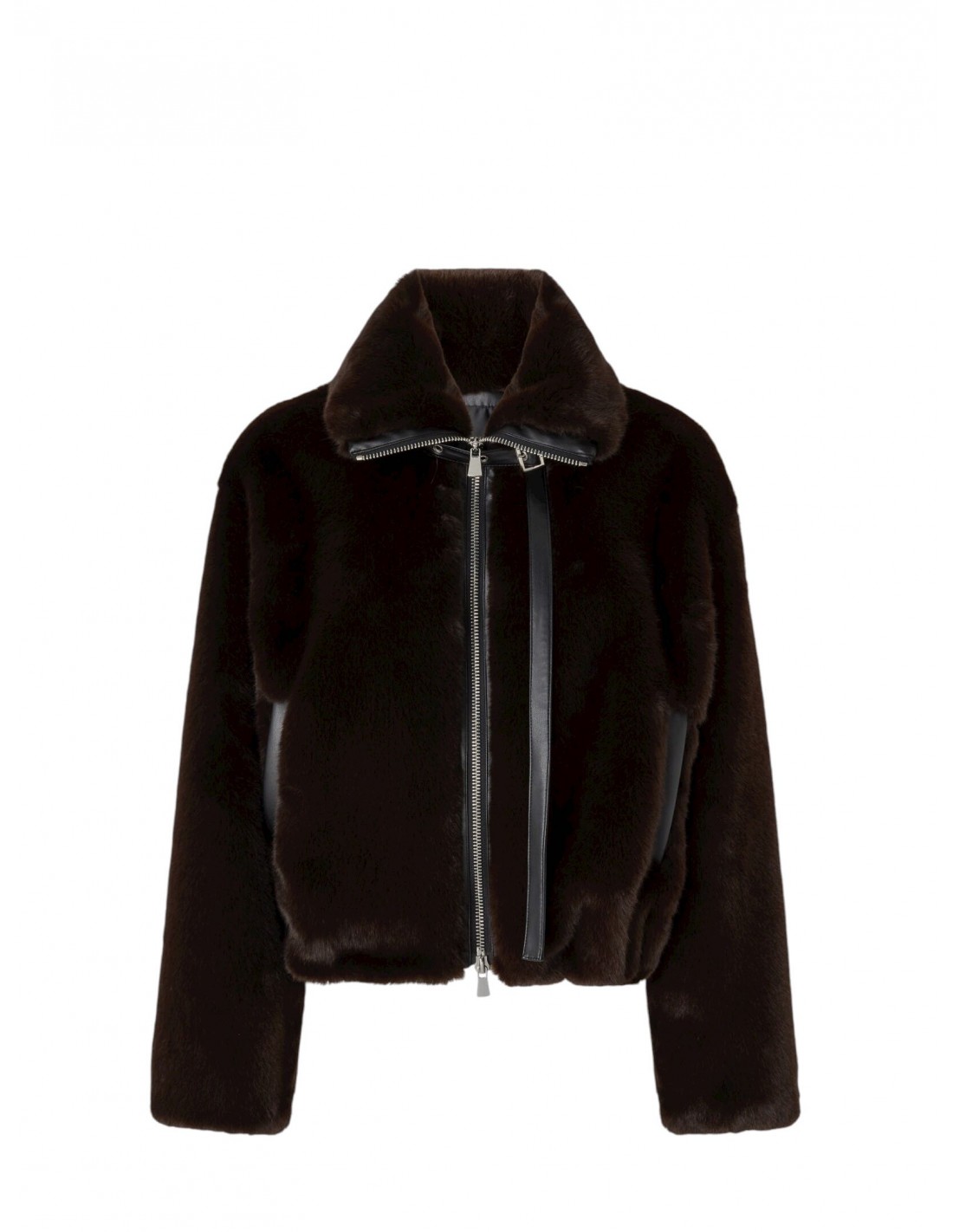 Giacca blouson realizzata in tessuto Aspen effetto pelliccia, con chiusura con zip a tutta lunghezza, un collo alto morbido e l'orlo con arricciatura. Il tessuto spalmato effetto pelle che profila le tasche, la chiusura e il cinturino con piccola fibbia conferiscono al modello uno stile biker perfetto per la stagione fredda. Non aver paura di osare e aggiungi un tocco rock al tuo guardaroba casual.