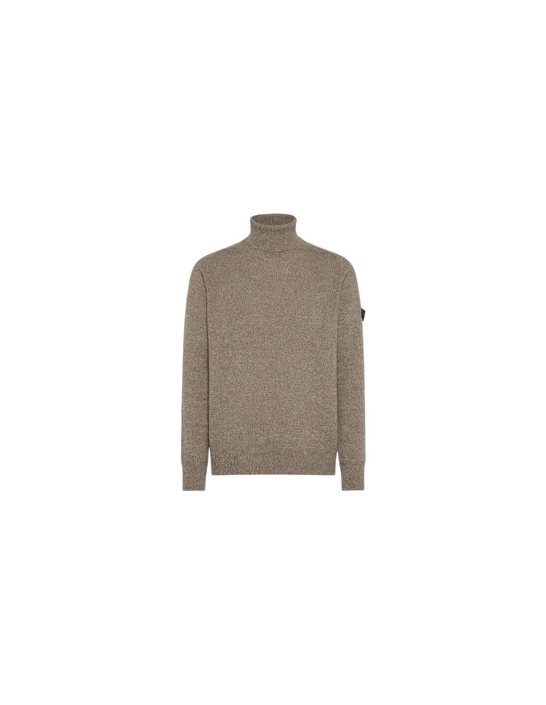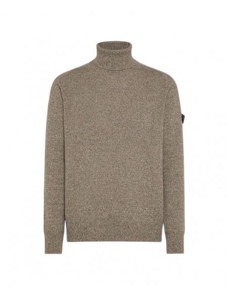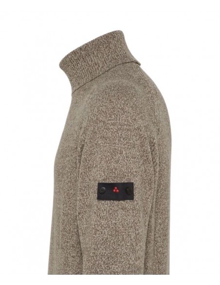 Maglione a collo alto in tricot di misto lana mouliné, caratterizzato da un raffinato effetto melangiato che dona profondità visiva e un tocco materico sofisticato. Il design essenziale è rifinito da collo alto, polsini e fondo lavorati a costine, per una vestibilità avvolgente e confortevole. La personalizzazione con logo Peuterey trilogy, simbolo iconico del brand, è applicata con discrezione con due bottoncini sulla manica sinistra. Caldo, versatile e dal gusto senza tempo, è il complemento ideale per un guardaroba invernale classico, curato ed elegante.
