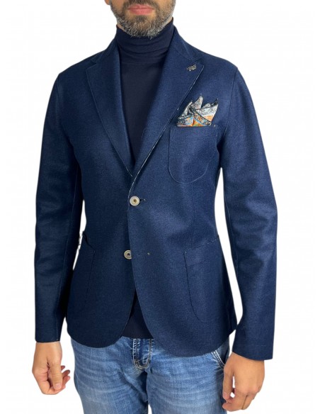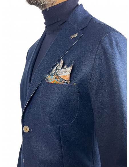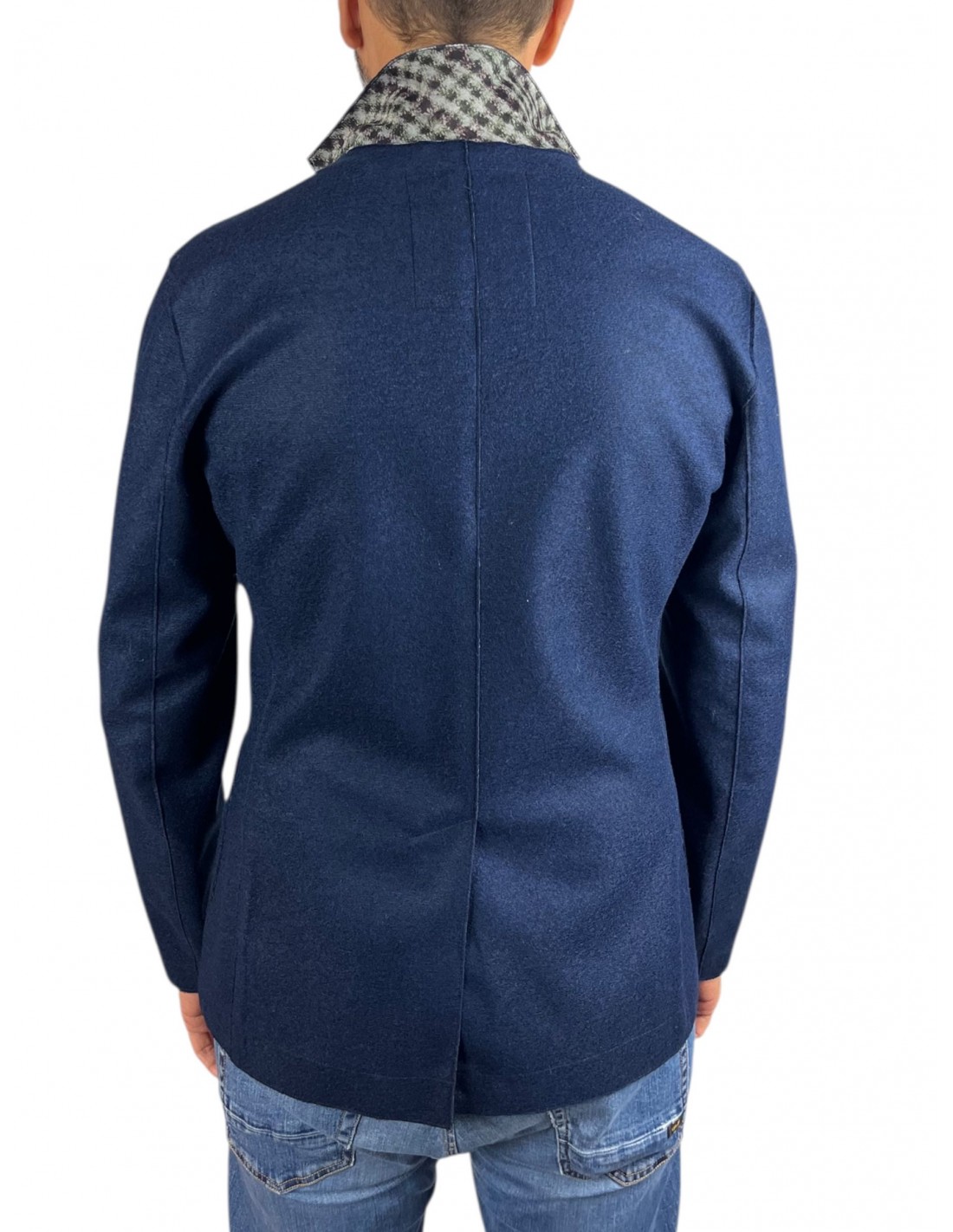 Giacca a taglio vivo in tessuto accoppiato lana jersey. 48% acrilico 32% poliestere 20% lana