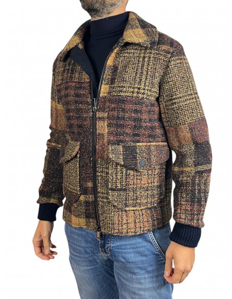 Bomber in lana a fantasia check multicolore. Con tasche a frontali a pattina 64% poliestere 18% viscosa 18% lana