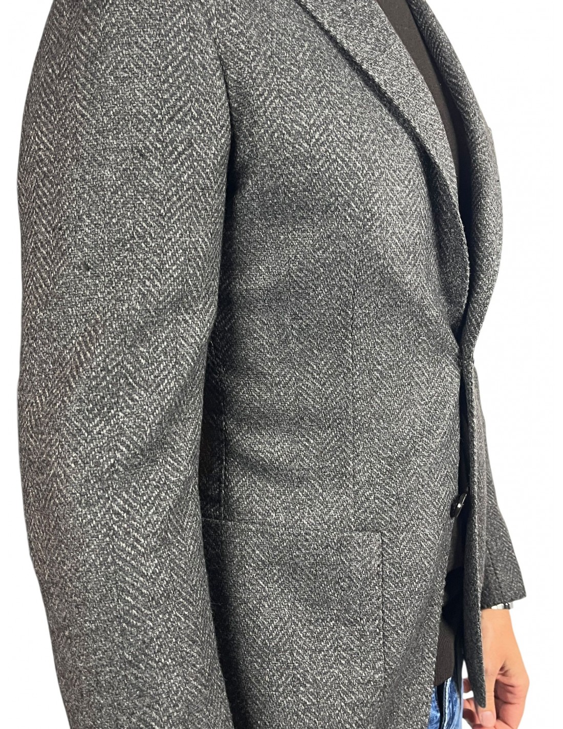 Giacca a revers tronco in lana effetto spigato bicolore. 72% lana 35% poliestere 23% cotone
