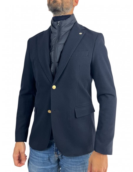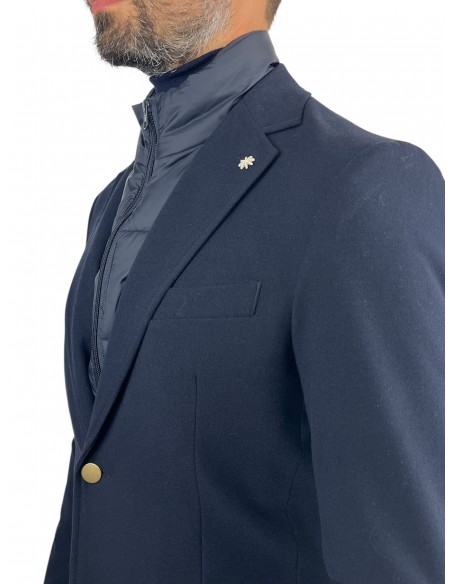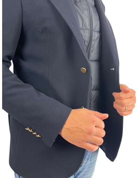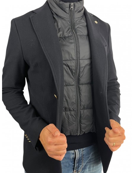 Giacca in lana con paramontura staccabile. Bottoni in contrasto colore 62% poliestere 24% viscosa 10% lana 4% elastan