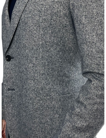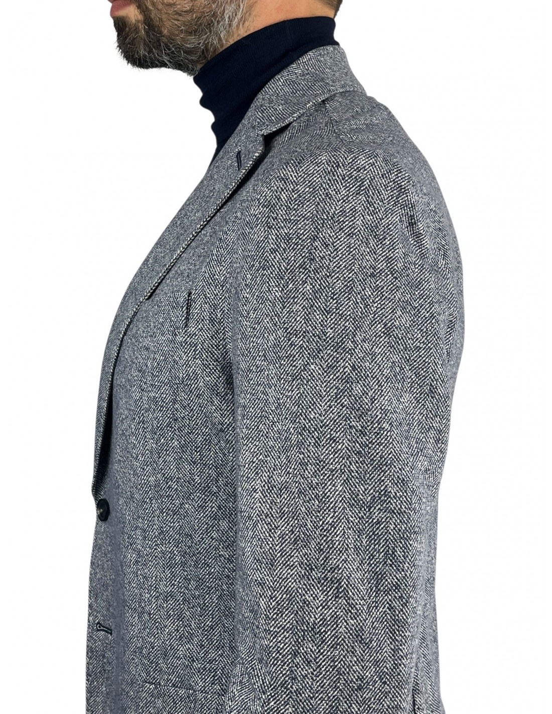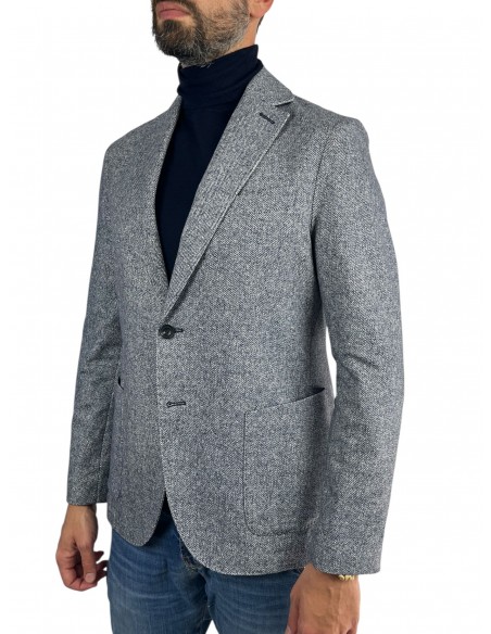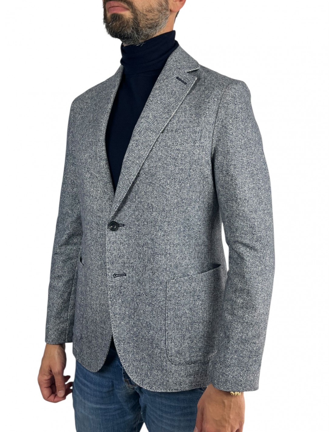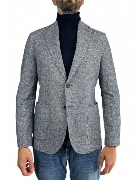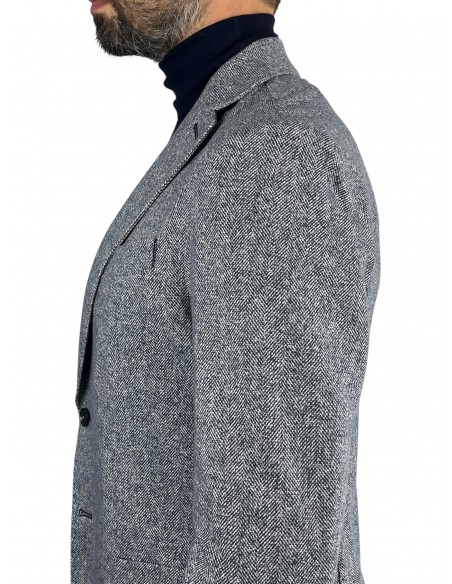 Giacca monopetto in tessuto jersey a stampa spigata. 87% cotone 13% elastan