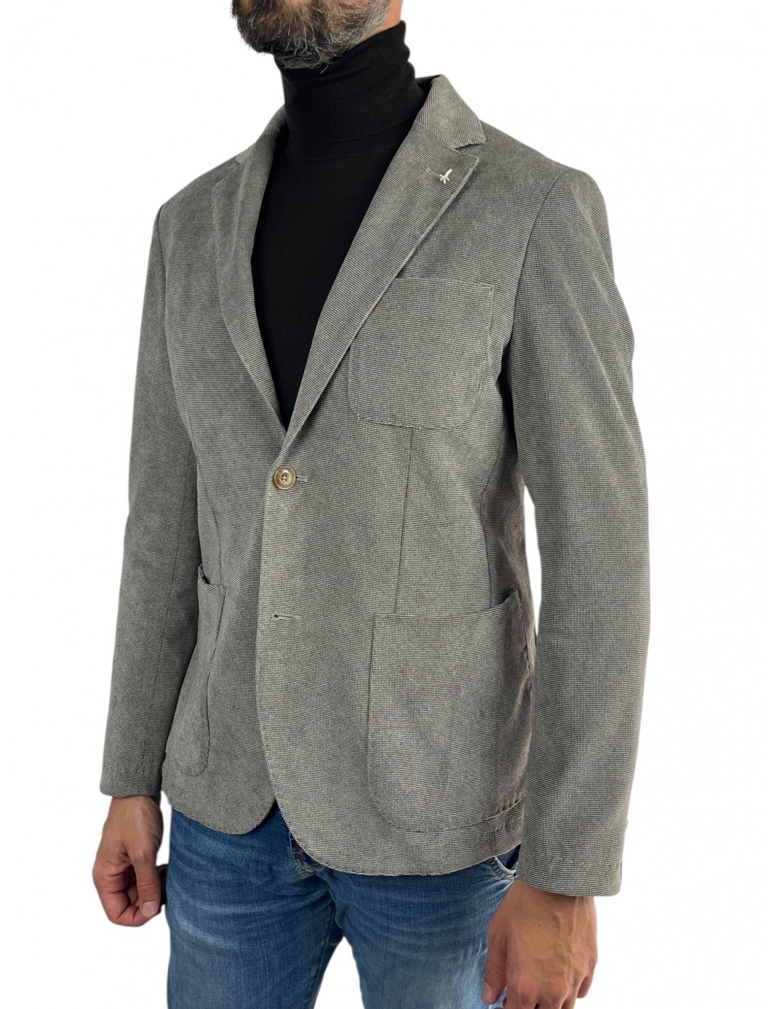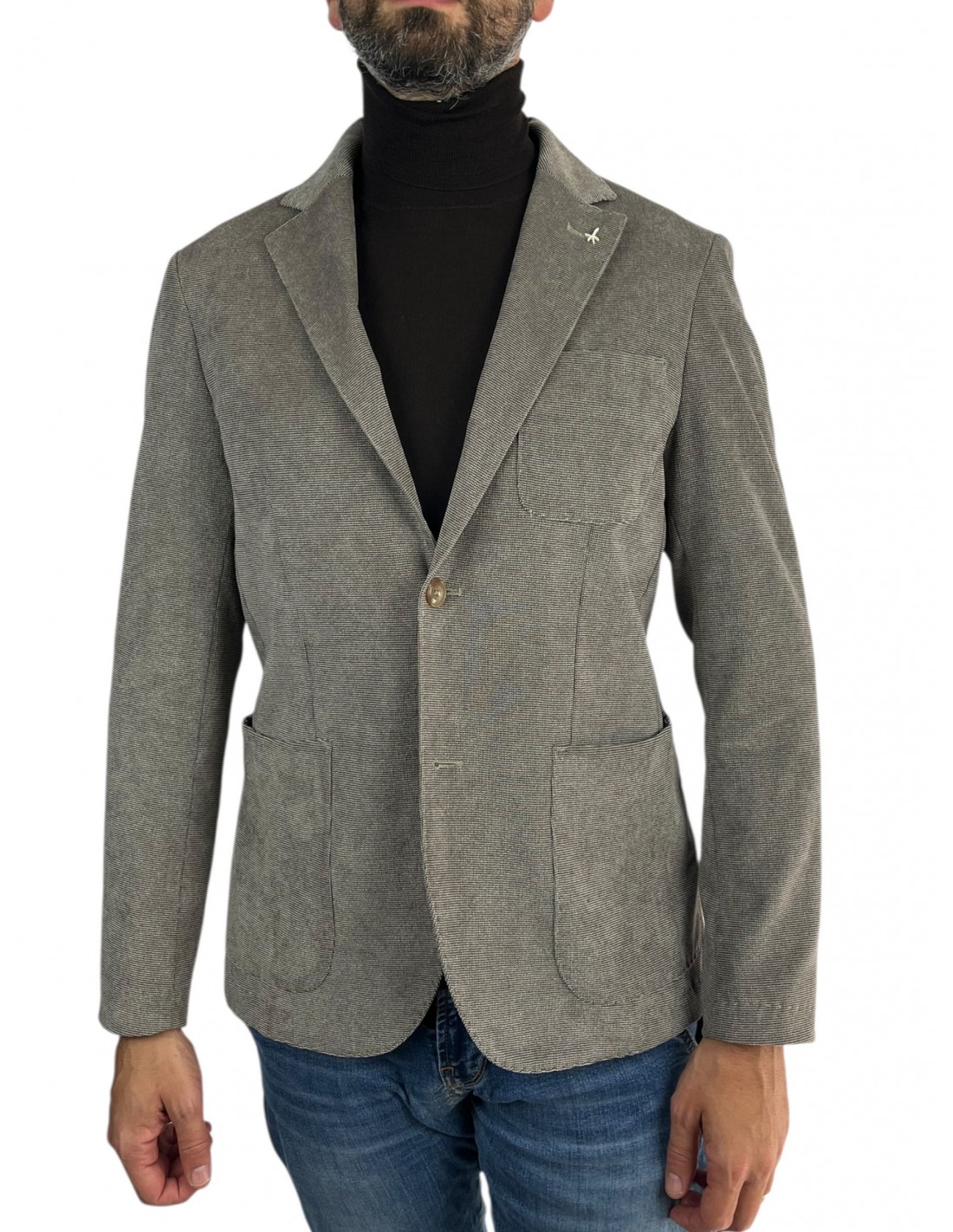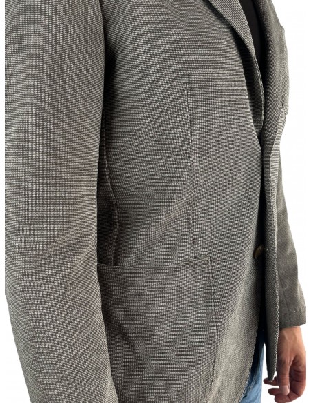 Il blazer Gege, realizzato in fustagno stretch, combina stile contemporaneo e funzionalità. Dotato di collo a revers, maniche con polsini abbottonati e chiusura a due bottoni, presenta una tasca a toppa sul petto, tasche applicate sui fianchi e tasche interne. I doppi spacchi sul retro completano il design, assicurando comfort e libertà di movimento.