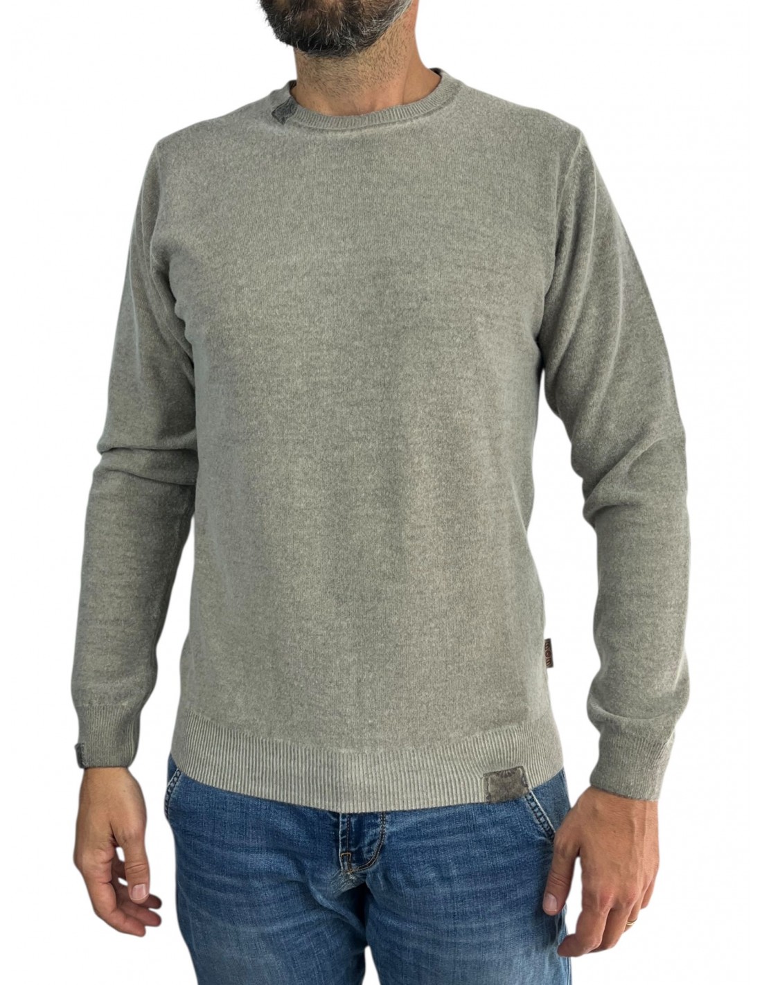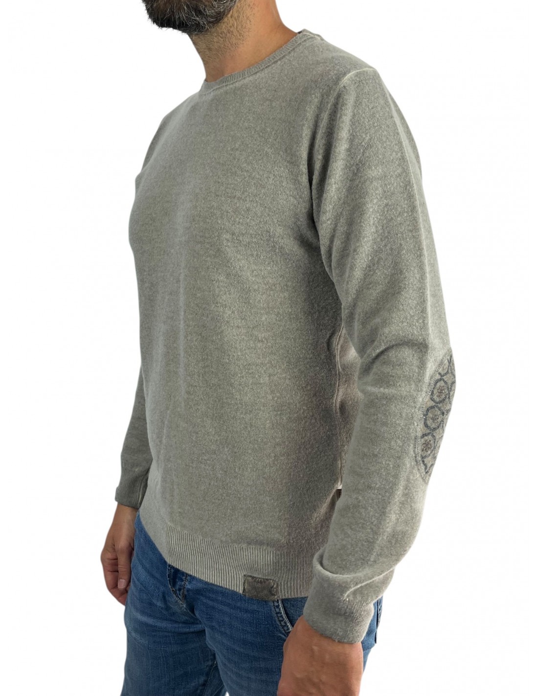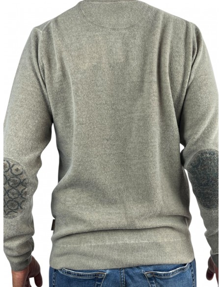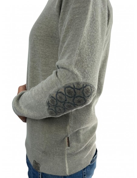 Maglia a girocollo in lana con toppe differenti a fantasia contrasto colore/fantasia MADE IN ITALY