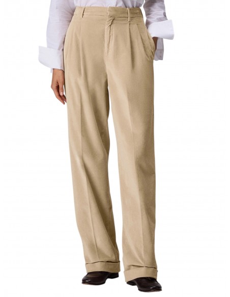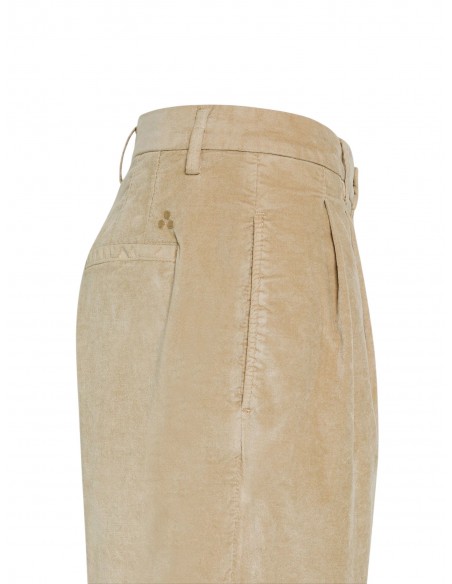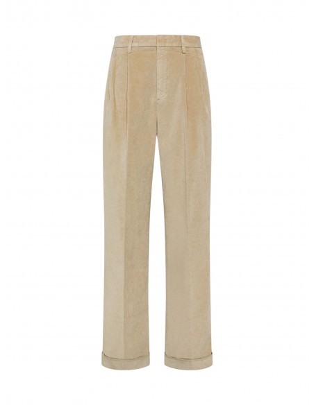 Pantaloni in velluto liscio di misto cotone e modal, leggermente stretch, con mano morbida e aspetto raffinato. La linea classica con vita alta, gamba dritta con pinces e fondo con risvolto è arricchita da dettagli sartoriali come i passanti in vita, le tasche alla francese sul davanti e finti taschini sul retro e la chiusura con zip e gancetto. Un modello intramontabile rivisitato con un tocco di modernità, perfetto per elevare i tuoi look di tutti i giorni. In velluto liscio misto cotone e modal Gamba dritta con pinces Vita alta con passanti Fondo con risvolto Tasche laterali alla francese