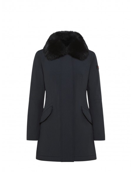 Piumino liscio in piuma riciclata e tela di nylon stretch, dotato di membrana performante e resistente a pioggia e vento. Il modello è impreziosito da un ampio collo in pelliccia di volpe staccabile, in tono colore e ha un impeccabile fit asciutto che valorizza la silhouette femminile. Collo a camicia, chiusura nascosta con zip a doppio cursore e bottoni. La moderna essenzialità del design fa di questo capo un must-have del guardaroba invernale. Versatile, consente molteplici abbinamenti e accompagna con stile impeccabile le diverse occasioni d’uso. Trattamento TeflonTM EcoElite.