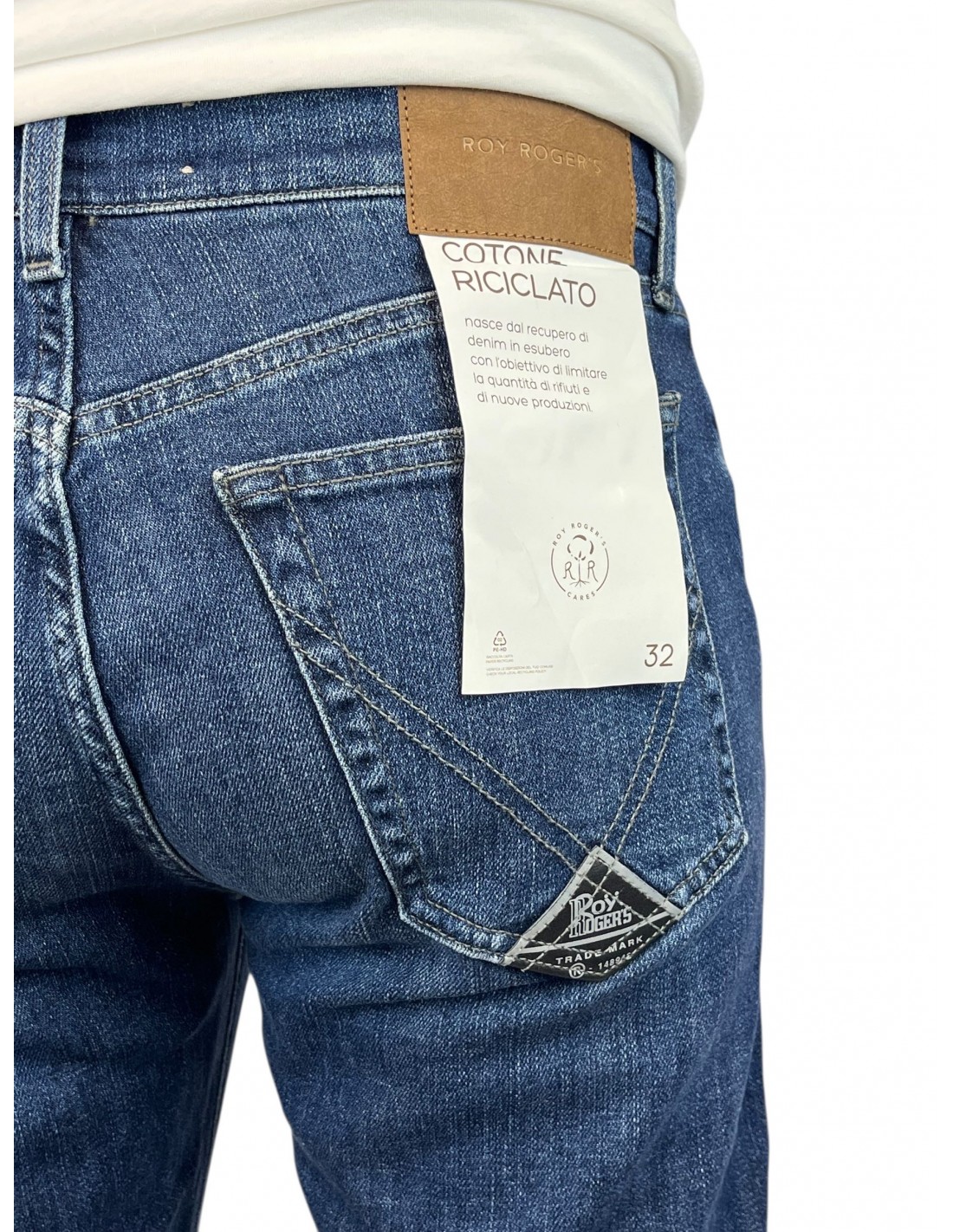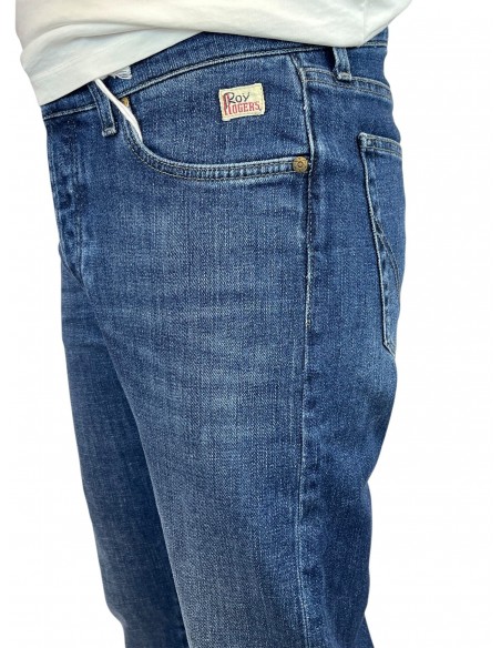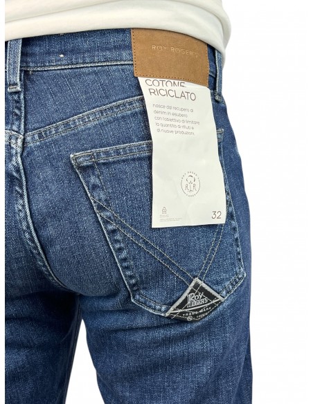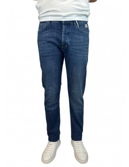 Jeans in cotone elasticizzato effetto lavato medio Cuciture a contrasto 5 tasche Slim fit Il modello é alto 1,85