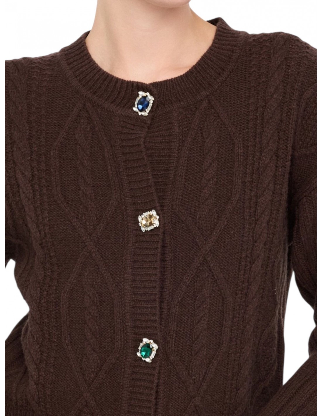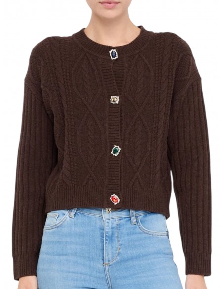 LIU JO - CARDIGAN MARRONE BOTTONI STRASS