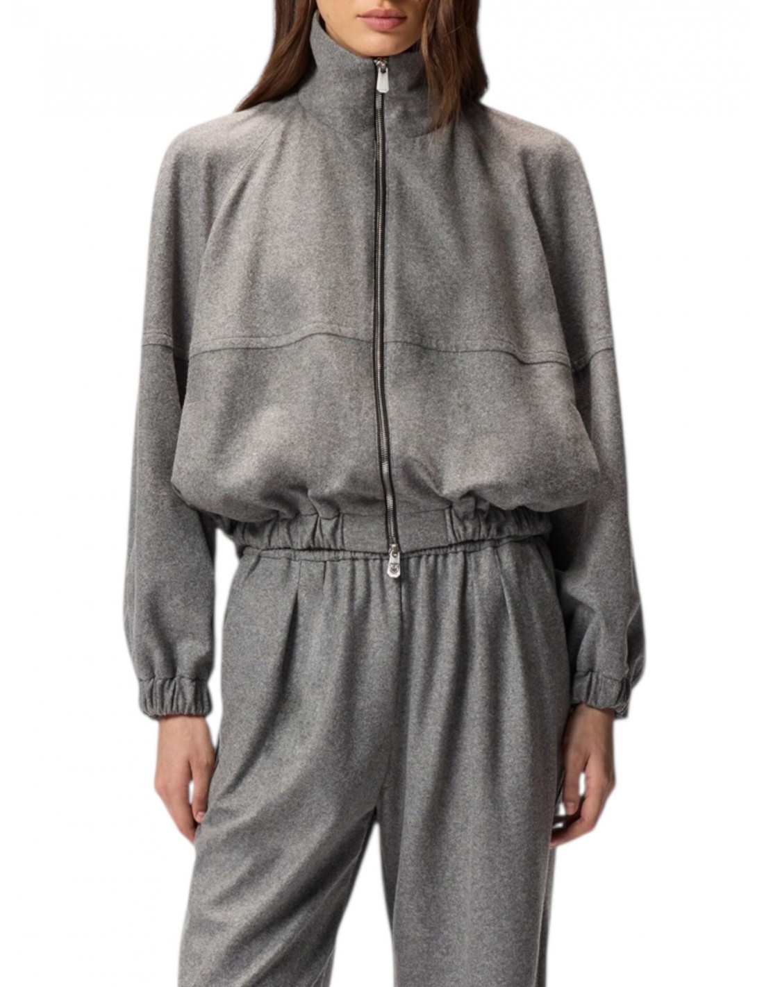 Bomber dalla vestibilità regular realizzato in flanella di jersey di misto lana tinto in filo, un tessuto perfetto per combinare morbidezza, elasticità e comfort. Il capo presenta un avvolgente collo in piedi, una funzionale chiusura frontale con zip e comode tasche laterali, ed è reso ancora più pratico dall'orlo e dai polsini elasticizzati. Abbraccia lo stile sportivo con questo modello pratico e versatile, da indossare nel tempo libero o durante le occasioni più casual.