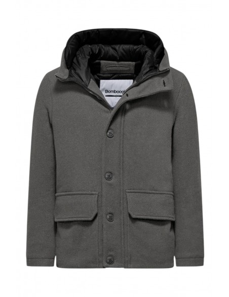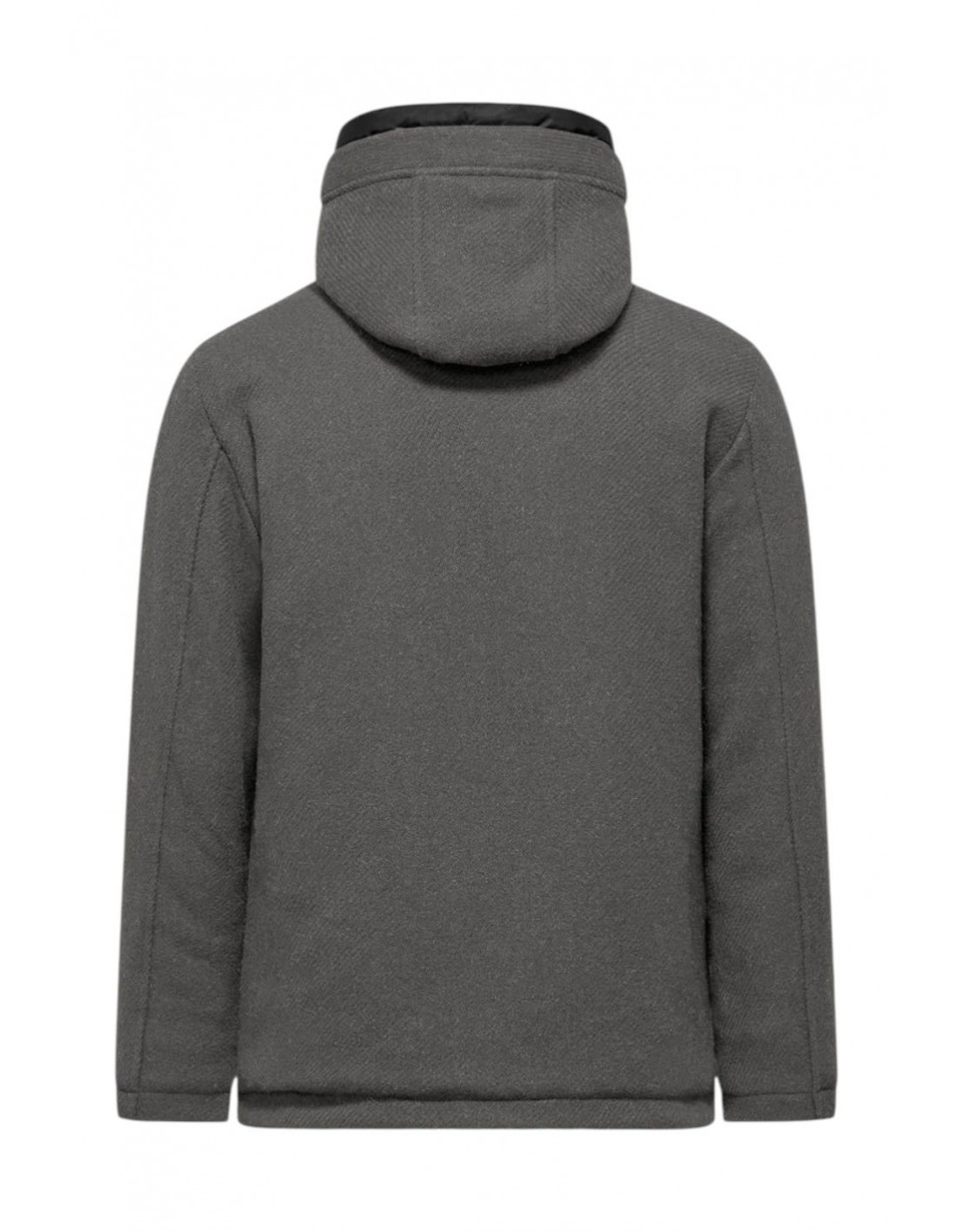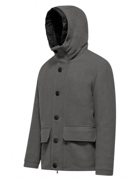 Il parka corto da uomo in tessuto di lana imbottito offre un calore affidabile per le giornate più fredde. Il rivestimento interno in nylon ripstop assicura una barriera windproof, mentre l’imbottitura di peso medio in poliestere garantisce comfort e isolamento termico senza appesantire il capo. Il cappuccio fisso protegge testa e collo da correnti d’aria e pioggia leggera. La chiusura con zip e bottoni in poliestere permette una regolazione rapida della protezione, adattandosi alle diverse condizioni climatiche. Il fit regolare valorizza la linea maschile e consente di indossare comodamente maglioni o felpe sotto il capo.