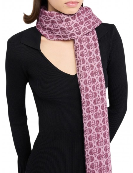 Stola rossa Realizzata in tessuto jacquard Logo monogram all over Bordi con frange 65 x 180 cm