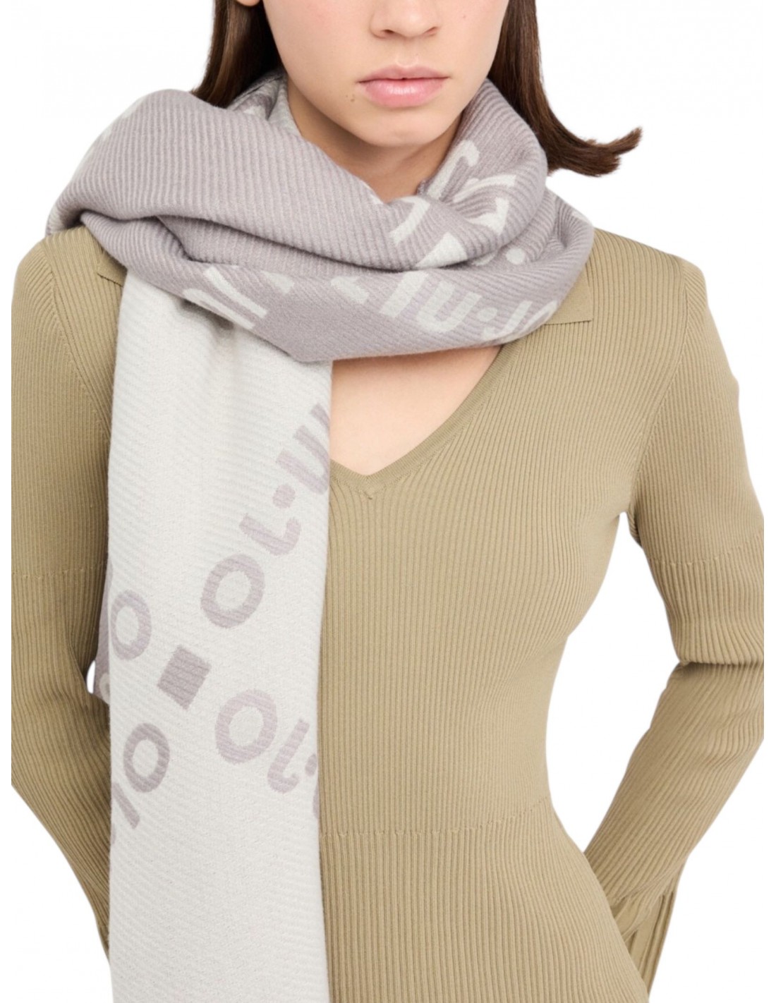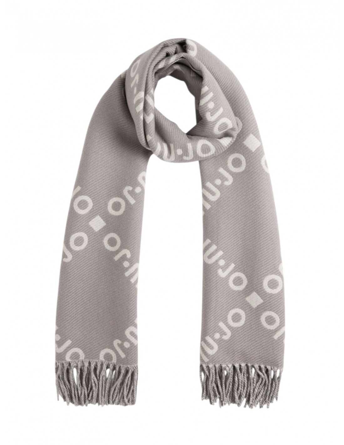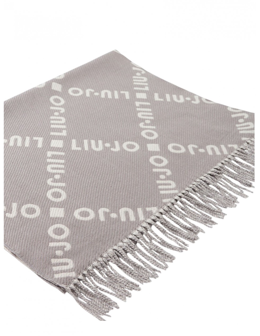 Stola grigia Realizzata in misto viscosa Logo jacquard Bordi con frange 70 x 180 cm