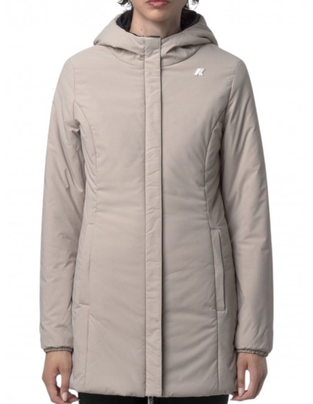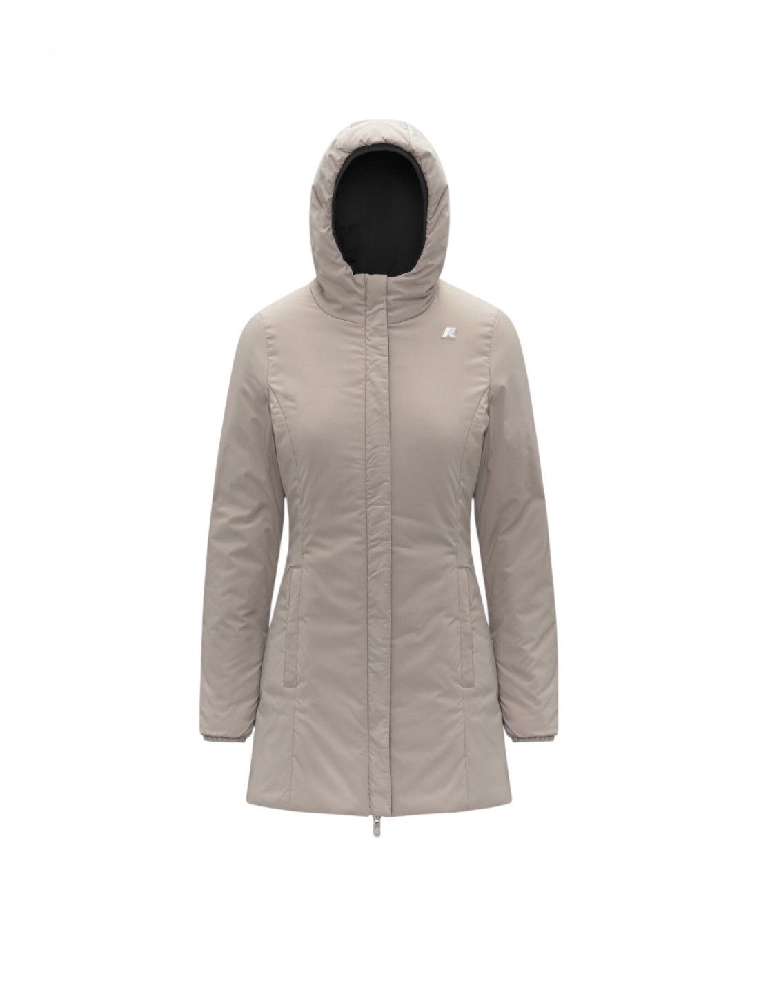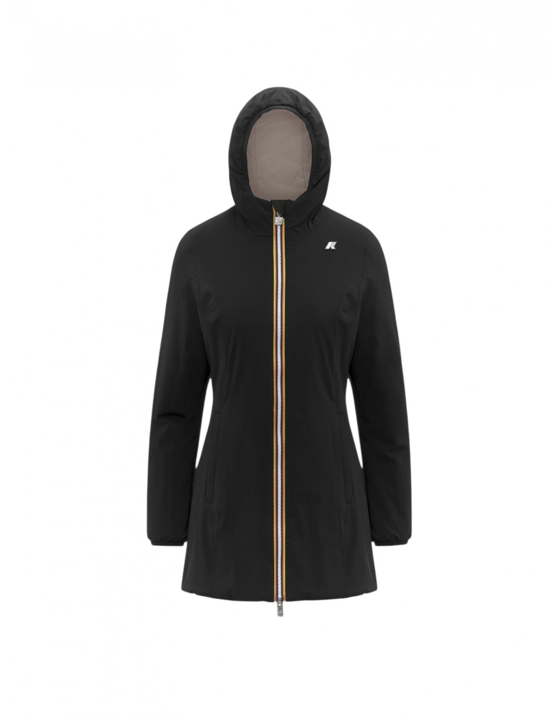 Denise è la giacca da donna con lunghezza a tre quarti che reinterpreta l'ispirazione funzionale K-Way in chiave femminile. Il modello combina un lato in poliestere elasticizzato impermeabile tinta unita e un lato in poliestere antivento dal colore a contrasto. L'imbottitura in ovatta offre un grado di calore medio, ideale per la mezza stagione, mentre le cuciture termonastrate isolano dal freddo e offrono maggiore comfort durante l'attività outdoor.
