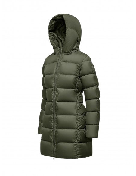 Questo piumino lungo da donna valorizza la silhouette grazie al taglio slim fit e a una linea essenziale, offrendo un perfetto equilibrio tra stile e comfort. L’imbottitura in piuma naturale composta al 90% da piumino e al 10% da piuma con fill power 750 garantisce un isolamento efficace anche nelle giornate più fredde. Il tessuto effetto microfibra semi-opaco, unito alla proprietà down proof, impedisce la fuoriuscita delle piume e mantiene il capo sempre in ordine. La superficie water resistant protegge dalla pioggia leggera, assicurando un aspetto curato e asciutto anche in condizioni climatiche avverse.