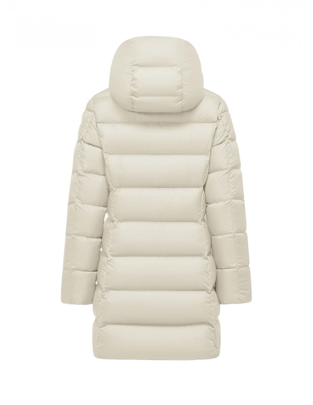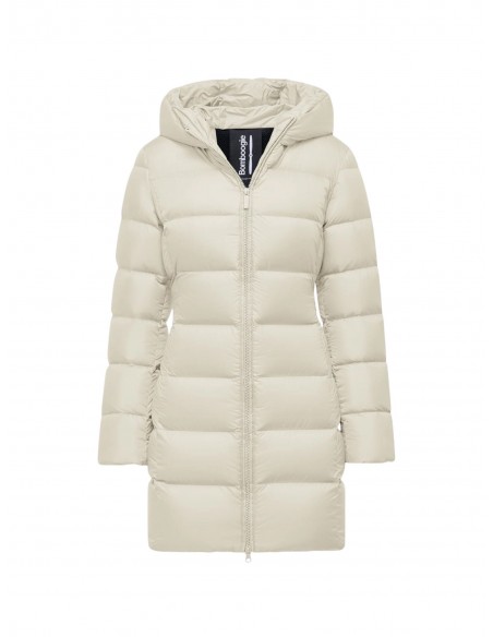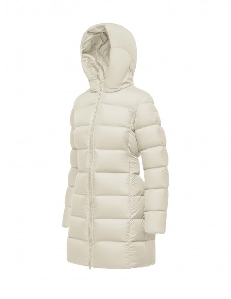 Questo piumino lungo da donna valorizza la silhouette grazie al taglio slim fit e a una linea essenziale, offrendo un perfetto equilibrio tra stile e comfort. L’imbottitura in piuma naturale composta al 90% da piumino e al 10% da piuma con fill power 750 garantisce un isolamento efficace anche nelle giornate più fredde. Il tessuto effetto microfibra semi-opaco, unito alla proprietà down proof, impedisce la fuoriuscita delle piume e mantiene il capo sempre in ordine. La superficie water resistant protegge dalla pioggia leggera, assicurando un aspetto curato e asciutto anche in condizioni climatiche avverse.