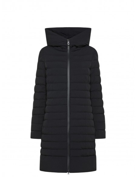 Piumino lungo a canali stretti, realizzato in tela di nylon bi-stretch dall’aspetto opaco. Il tessuto è down proof, pensato per contenere l’imbottitura senza dispersioni, assicurando comfort, volume e resistenza. Novità della linea Linea, i capi sviluppati all’interno di questo concept si distinguono per l’elevata elasticità dei tessuti, che li rende estremamente confortevoli, minimali nel design e altamente adattabili alle forme del corpo, ideali per uno stile essenziale che non rinuncia alla funzionalità. L’imbottitura in ThermoPlume®, prima vera alternativa sintetica al piumino d’oca offre calore, leggerezza, morbidezza e resistenza all’acqua. Il modello reinterpreta i codici estetici di Peuterey in maniera contemporanea, con un design minimale e raffinato: collo alt